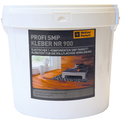 Svi Weitzer parketi mogu se u potpunosti lijepiti, što je optimalna tehnika za dugoročno rješenje. Ova metoda značajno smanjuje buku u prostoriji, čak do 10 dB, i idealna je za podno grijanje. Preporučeno ljepilo je Profi SMP ljepilo br. 950 bez plastifikatora.