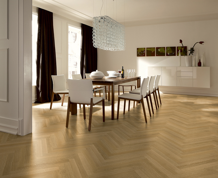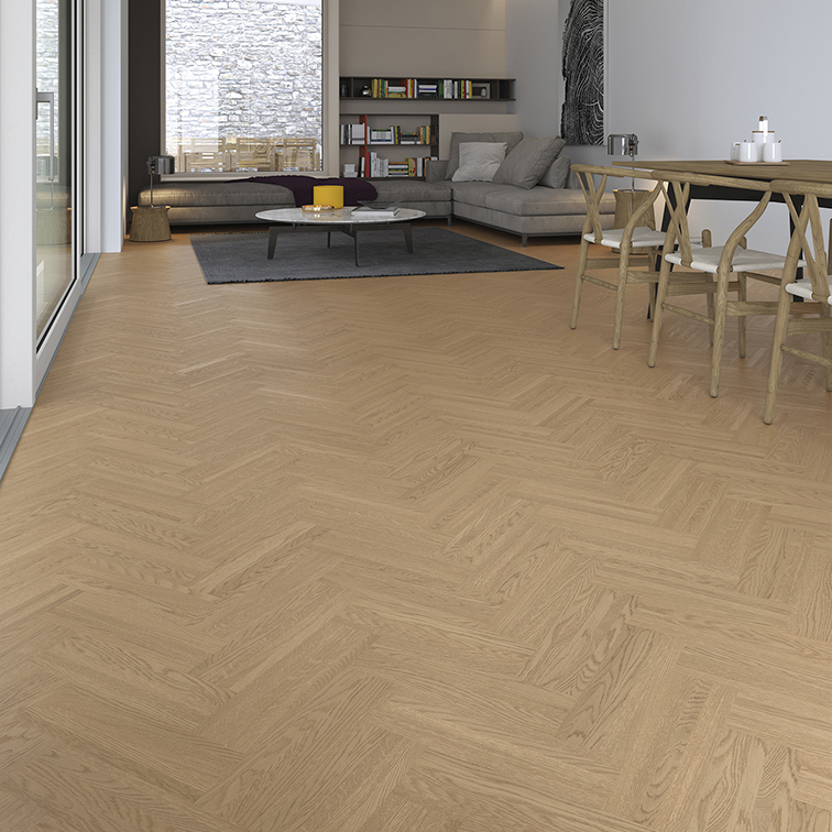 - Mogućnosti dizajna: Pogodno za polaganje u uzorak riblje kosti (svi artikli u svim obradama) ili francuski vez (Chevron) pod kutom od 45° ili 60°. Polaganje u francuski vez dostupno je na upit.